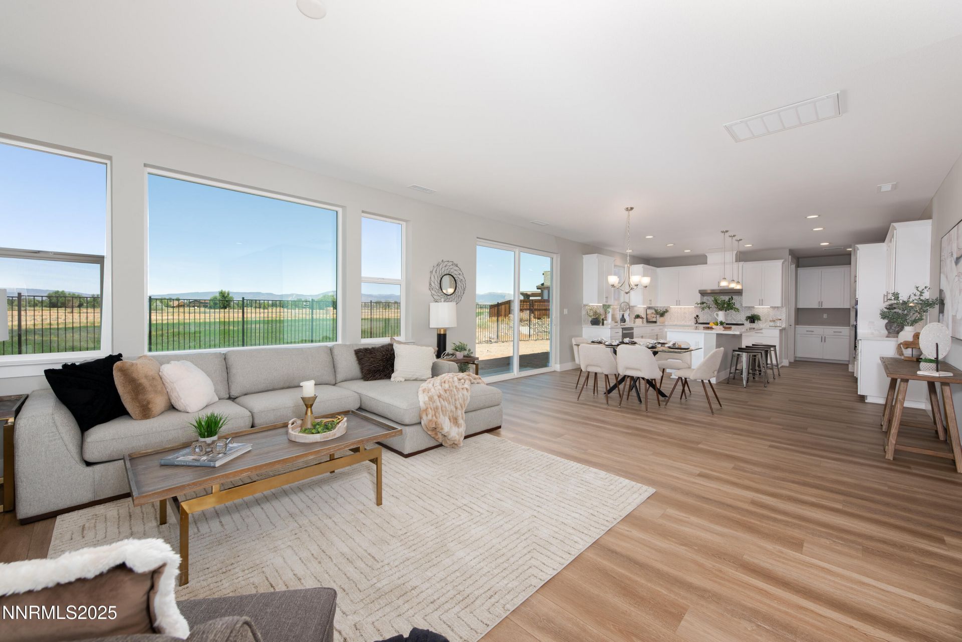 Views, views and more views! Situated on a premium lot, this brand-new home offers breathtaking views of the Sierra Mountains and expansive farmland. With an open-concept layout and no rear neighbors, enjoy both comfort and privacy in a stunning natural setting with no HOA. The main living area features a bright and airy flow between the living room, dining room, and kitchen-perfect for entertaining or everyday living. Over 15k dollars of interior upgrades are included in this home. The kitchen is beautifully appointed with quartz countertops, a stylish tile backsplash, and a spacious walk-in pantry. Additional storage closets are available both downstairs and upstairs. An office area is located at the front of the home on the main floor, adjacent to a full bathroom. Upstairs, you'll find two generously sized guest bedrooms, a full guest bath, a dedicated laundry room, a bonus room and an oversized primary suite with stunning Sierra Mountain views and plenty of room to relax. Step into the serene backyard, complete with RV parking, and enjoy uninterrupted views of surrounding farmland. Located in Gardnerville, this property is close to shopping, healthcare, and local services. South Lake Tahoe is about 25 minutes away, and Carson City is about a 30-minute drive. The area is known for its access to the outdoors, with nearby trails, fishing spots, and mountain views. Gardnerville also offers walkable downtown, community events, and proximity to historic Genoa and the Carson Valley. Pictures of the home may reflect a different property with a similar floorplan, finishes may vary.